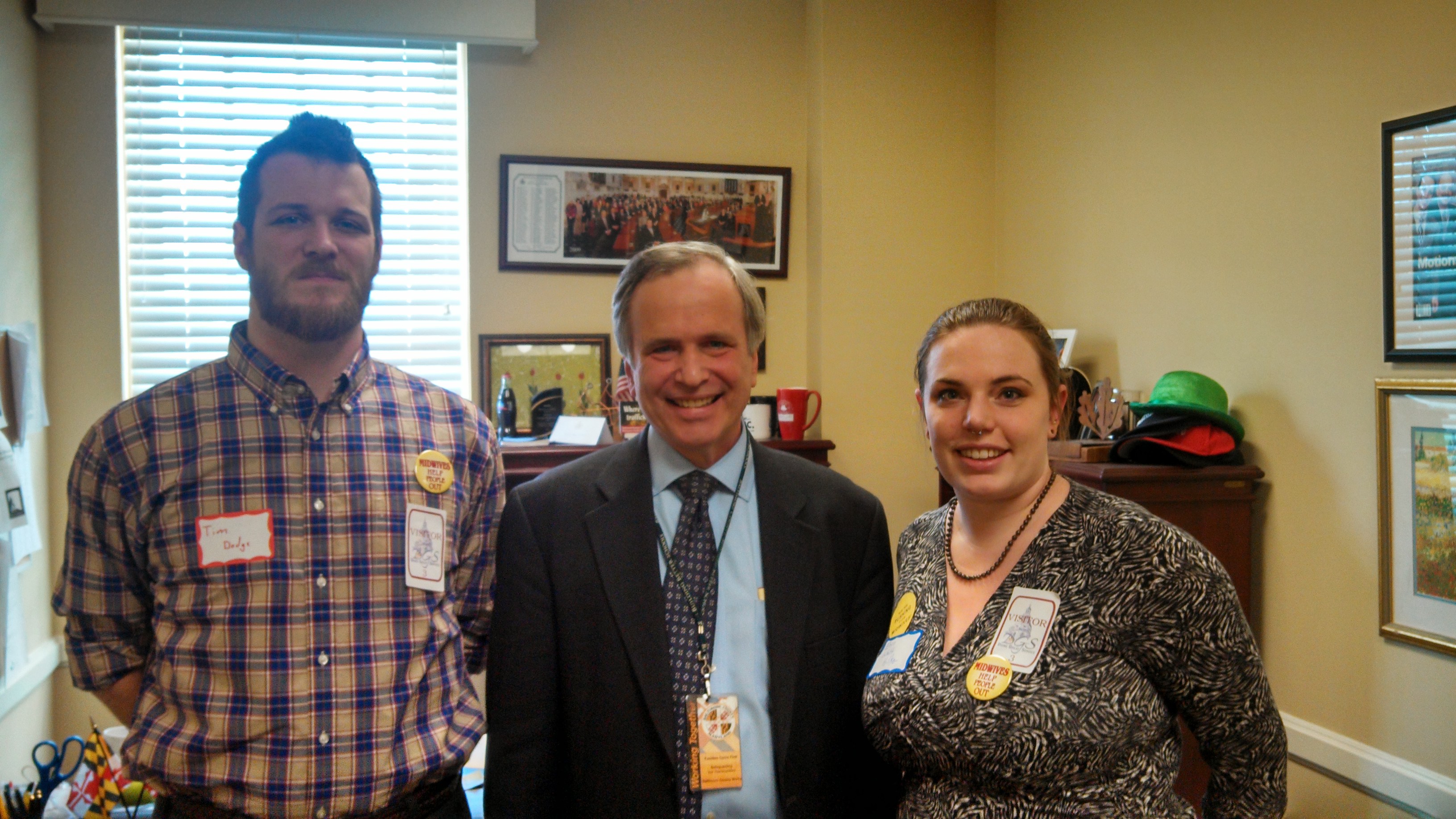 With Senator Zirkin’s aide, we did not have a midwife, so I gathered up all my professional and made the pitch myself with the the support of my husband and another mom. We used our talking points sheet and did pretty well, I think.
